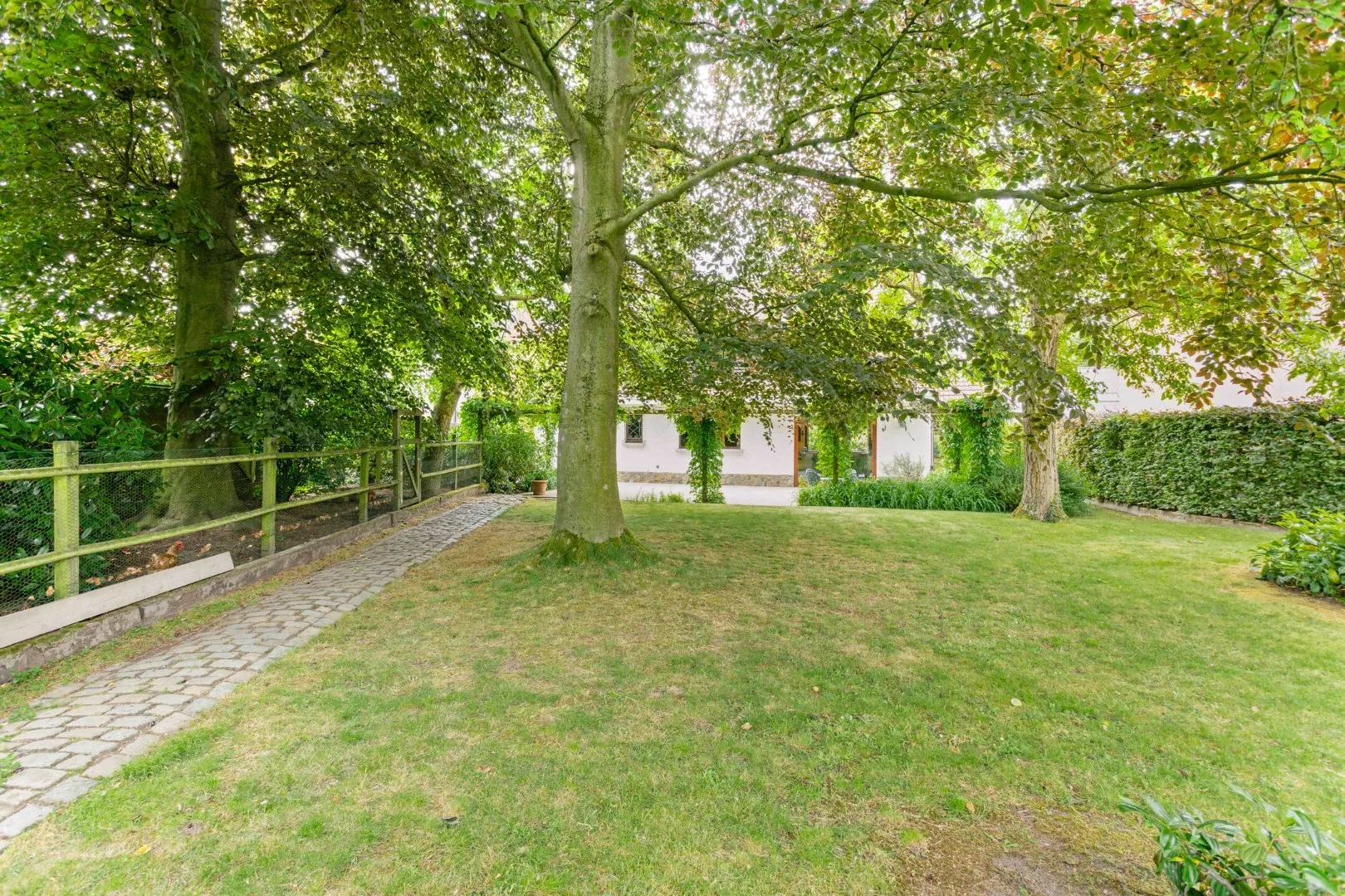De prachtig aangelegde, volledig omheinde en noordgericht gelegen tuin is ideaal om in alle rust van de zon te genieten op het grote aangelegde terras. Achteraan vind je bovendien een ruime tuinberging en een aparte achteringang.
